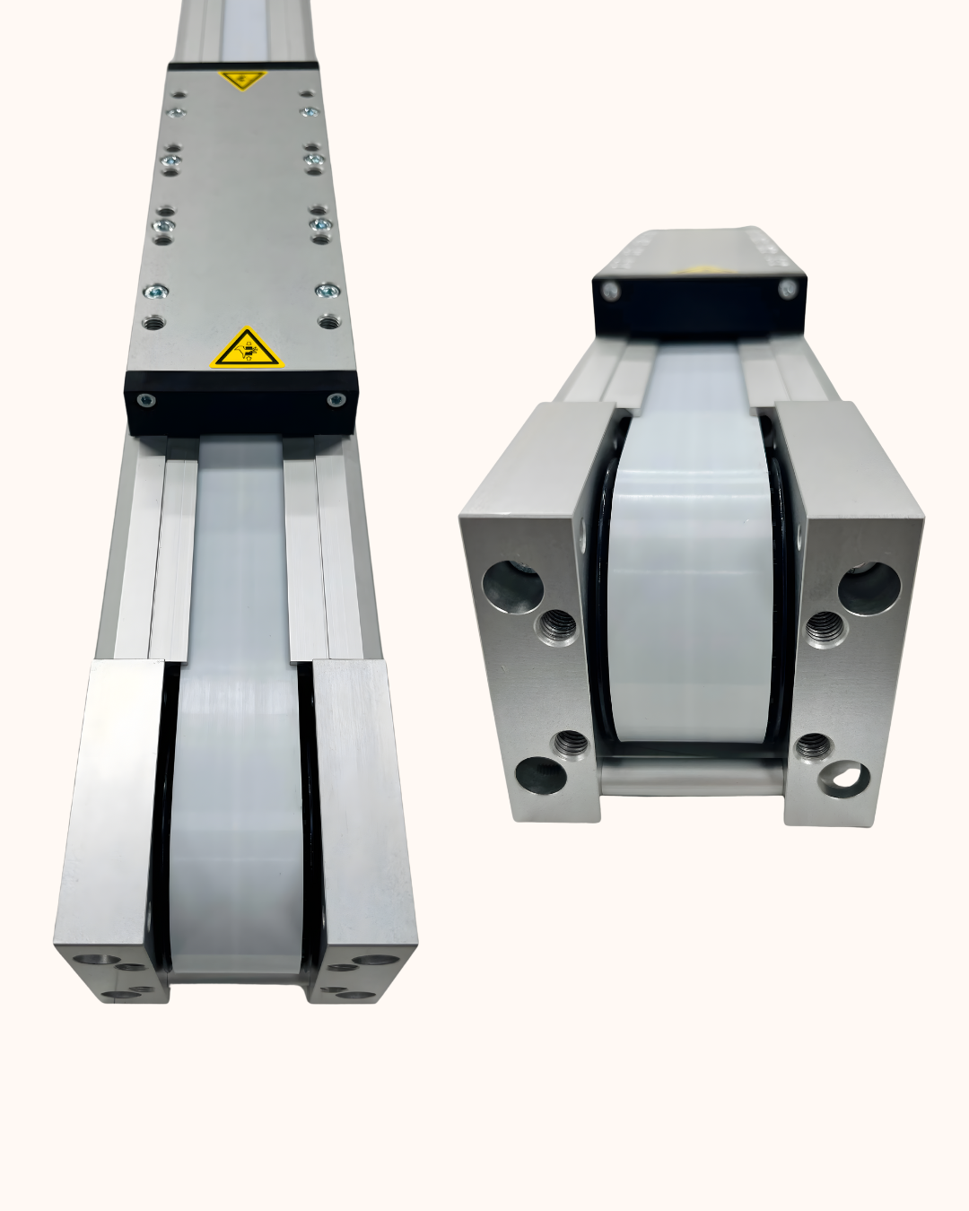 Voor een klant maakten wij deze week een zuigerstangloze cilinder met daarop een lineaire loopwielgeleiding gemonteerd. Op klantwens heeft deze 3 sledes. De middelste slede wordt aangedreven door de zuigerstangloze cilinder.