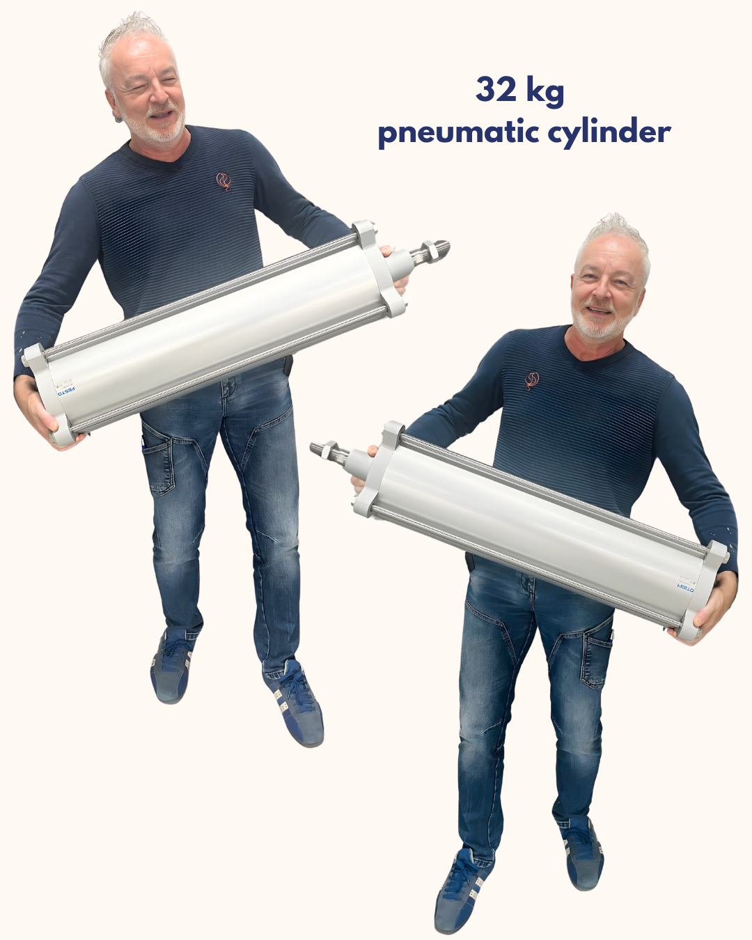 Middelste afbeelding: de nieuwe en oude pneumatische cilinder.